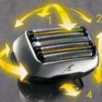 ▲刃の浮き沈み、縦の首振りに加え、横の首振りを実現する360度密着システムを搭載。全方向に動き、あご下にも密着する