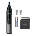 ▲鼻・耳用のトリミングヘッドに加え、眉毛コーム(3/5mm)も付属。電源は単三形アルカリ乾電池を使用する
