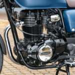 英国車全盛だった’60年代のスタイルが蘇った! 当時流行った若者文化“ロッカーズ”へのオマージュを感じるクラシックレーサーのシルエットに「待ってました!」と声を大にして言いたいオーソドックスな並列2気筒。クランクケースがボッテリしているのは、まだミッションやプライマリーが別体だった頃を再現。ライダースジャケットでキメたい!