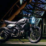 ドゥカティならではのLツインエンジンを搭載するスクランブラーは、400、800、1100の3兄弟だが、真ん中がちょっと不良っぽくなった。夜の雰囲気を想起させるダークカラーで、車体側面にはゼッケンプレート。リアフェンダーは捨て去り、ナンバープレートステーはスイングアームにマウントされ、その名のとおり夜に映えそうだ。