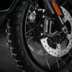 ▲オフロード走行に適したブロックタイヤとスポークホイールに、ブレンボと共同開発した新ブレーキキャリパーを装備