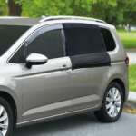 窓枠に被せてメッシュガード下端に内蔵したマグネットをドアの金属部分に留めるだけで装着可能。車体とマグネットの隙間ができず、細かい網目が虫の侵入をシャットアウト。フロントドア用、リアドア用、スライドドア用の3種類が用意されている。
