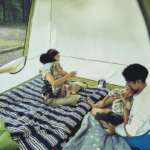 ▲インナーテントは大人ふたりが横に並んで寝るのに充分な幅を確保。枕元や足元にはまだ荷物を置く余裕もある