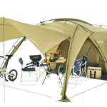 2. キャンプでも広々と過ごせるロッジ型シェルター