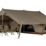 スノーピークからは、ブランド史上最大級の広さを誇る新モデルが登場。広々とした寝室に加え、6人がチェアに腰掛けてリラックスできる大きなリビングスペースを用意。グランピングのような快適さは初心者にも嬉しい。