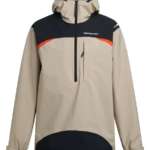 高機能なリサイクルナイロンを使用した、耐水圧10000mmのウォータープルーフ仕様のアノラック。裏地にメッシュを採用してベタつきを軽減し、温かさまで感じられる。デザイン性が高く、山はもちろん街でも映える!