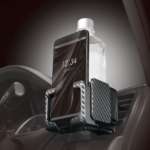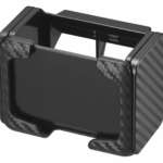 ▲高級感のあるカーボン調デザイン。付属のベルトとヒモで簡単に取り付けられる