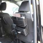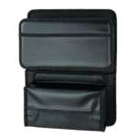 シートの裏側に取り付ける収納ポケット。上部にはドリンクやスマホなどの小物を、下部にはボックスティッシュを装備できる。下部を折りたたんでコンパクトに使うこともできる。