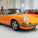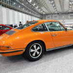 この鮮やかなオレンジ色(シグナルオレンジ)の911は1971年式の911E。1968年にホイールベースが延長され、70年モデルからは排気量が2.2Lに拡大されています。