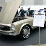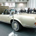 ガルウイングのW198に続く、2代目SL(W113)は1963年〜1971年に製造されました。現代まで続くSLならではのスタイルの礎を築いたモデルで、シャープなボディラインが印象的。縦目のヘッドライトもW113を象徴するものでした。