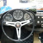 750はレースで活躍したのち、GTモデルとして登場し大ヒット。アバルトの名が世界中に知れ渡るきっかけになりました。今回出展されたのはオープンモデルのスパイダーザガート。クーペモデルはルーフに2つの大きなコブ(ダブルバブル)があることで知られています。