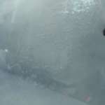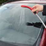 ▲専用クリーナーでしっかり擦ると、頑固な油膜も落とせて水滴がべったりとガラスに張り付く