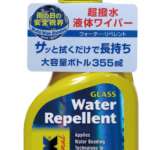 油膜を落としたら、ガラスコーティング剤を塗り込んで撥水状態にする。「ウォーター・リペレント」はクロスで塗り込み乾いた面でならすだけの簡単施工で、ウインドウ25枚分も使える大容量。「ぬりぬりガラコ ハヤデキ」は直接塗り込むタイプで、従来5~10分必要だった乾燥時間が不要。