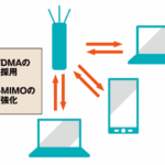 Wi-Fi 6からは、データの伝達方式に新たにOFDMA(Orthogonal Frequency Division Multiple Access)を採用している。従来は1つの通信帯につき1つの端末にしか通信を送受信できず、接続台数が多いと効率が悪かったが、OFDMAは1つの通信帯に複数の端末への通信を割り当て、効率よくデータを送受信できる。そのため接続台数が多い環境で有利だ。また、複数台に効率よく通信できるMU-MIMOという仕組みも拡張され接続台数が増えている。