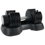 種目や使う人のレベルによって重さを2〜20kgまで、7段階で調整できるダンベル。レバーをスライドするだけですぐに重さを変更可能。グリップには本格ジムのマシンにも採用されている滑らない加工を施し、本格的な筋トレにも対応する。