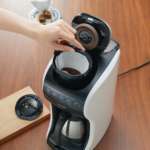 豆と水を入れてスイッチを押すだけで、挽き立て淹れ立てコーヒーが全自動でできあがる。新ブレード搭載のミルは中細挽き。すっきりシンプルなデザインでコンパクトだから、置く場所を選ばない。W162×D280×H264mm、容量:550ml(1〜4杯)