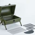 ▲焼き網、炭置き網、火床仕切り板などが付属する。本体サイズは約W42×D29×H37cmとコンパクトな設計