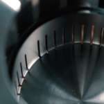 ▲内部に刻まれた細かなスリットが高効率燃焼のヒミツ。渦巻状に発生した炎は熱が一点に集中するので調理が短時間になる利点も