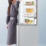 奥行薄型設計とインテリアに調和しやすいデザインを採用し、出っ張りを抑え、スッキリと美しいキッチン空間を演出できる。奥行を薄型化したことで庫内が見渡しやすくなり、食品の使い忘れや買い物のムダを防ぐことにも役立つ。週末のまとめ買いや作り置きに便利な2段構造のチルドルームを搭載しており、上段の「うるおいチルド」のほかに低温制御を実現した下段の「作りおき急冷」が搭載された。菌の増殖を抑えて食品の鮮度を保つことができる。