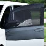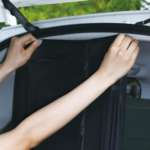 バッグドアに防虫メッシュを取り付けたら、フロントドアのウインドウにも防虫メッシュの取り付けをおすすめ。窓枠に被せて、マグネットで固定するだけと超簡単だ。