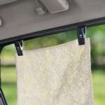 窓枠など金属部分に固定し、クリップ部分に手持ちのハンカチやタオルなどを挟むことで、簡易的に日除けが作れる便利なマグネット固定タイプのクリップ。窓ガラスに貼らないので、停車時は窓の開閉が可能。マグネットがつく場所ならどこでも使え、帽子などの小物を吊すのにも便利。