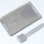 ソロキャンプでひとり用の肉や野菜を焼いて食べるのにぴったりのミニ鉄板。サイズは8.4cm×13.2cmで、リフター付きなので、熱くなった鉄板の移動も楽々。