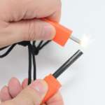 マグネシウム棒のコーティングをスクレーパーで削って、スクレーパーでマグネシウム棒を強く擦ることで火花を散らして着火。少しコツが必要だが、慣れれば火起こしはバッチリ。