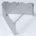 2枚のプレートを使い、切り込みを交差させるようにして組み合わせる焚き火台。展開サイズは16cm×13cm×7cmとコンパクトながら、しっかりした造りで安定感があるので、安心して使える。