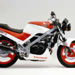 さらに遡ると「VFR400」の教習仕様も存在しました。筆者が免許(当時は「中免」と呼ばれていた)を取ったときも、教習車は「VFR400」でした。90度V型の4気筒エンジンはカムシャフトをチェーンではなくギア(歯車)で駆動するカム・ギヤトレーン方式を採用していて、ヒュンヒュンという独特な回転音が記憶に残っています。この方式は高回転での伝達効率が高く、当時のレースでも活躍した名車でした。