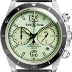 色のバリエーションの豊富さもグリーンダイヤルの魅力。このモデルのダイヤルは薄いグリーンだが、実はこれは夜光塗料の色で、暗所に行くと鮮やかなネオングリーン色に輝くようになっている。しかも輝度が高いので、ちょっと暗い場所でも十分に発光して綺麗だ。グリーンの可能性を広げたモデルである。自動巻き、SSケース、ケース径41mm。