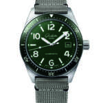 1969年に発表された本格ダイバーズウォッチが2019年に復刻され、レトロな雰囲気で人気を集めている「SeaQ」。その性能の高さを裏付けるために、国際規格のISOとドイツの品質規格であるDINの両方で、ダイバーズウォッチの品質規格をクリアしている。今年は葦草(あしくさ)のような深いグリーンをダイヤルとベゼルに採用。グレー色のストラップとの相性も良い。自動巻き、SSケース、ケース径39.5mm。