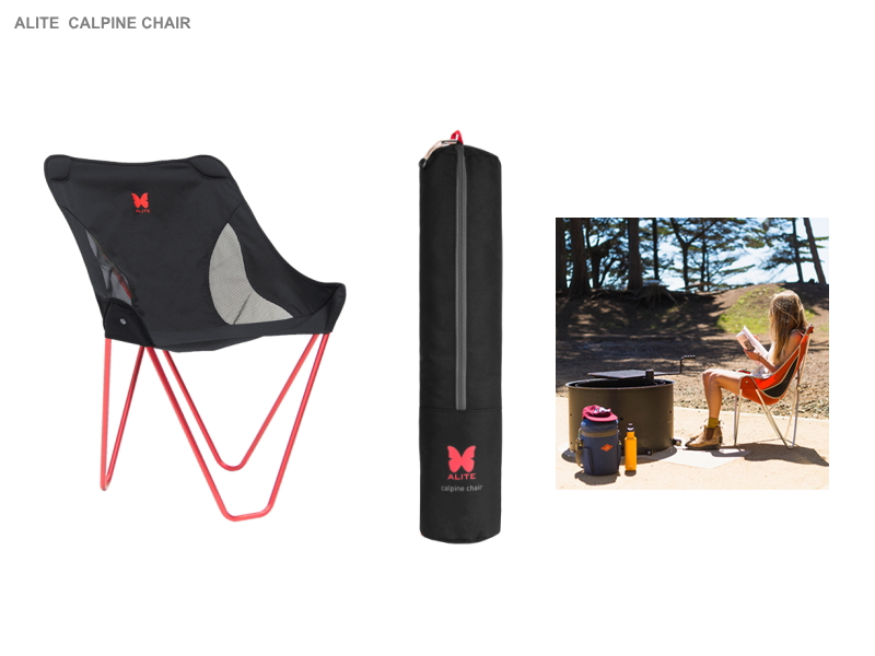 そこでオススメなのが、もうちょっと座面が高いチェア。ALITEのこのチェアは、軽くて折り畳むとコンパクトになる、いわゆるアウトドアチェアなんですが、座面がちょっと高めなんです。これなら、短時間のリラックスにはもってこい。ステージの合間にちょっと休憩に最適です。