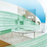 ▲フィルターは三層構造になっており、イオン化ワイヤーフレームが電磁場を作り有害物質を帯電させ、集じんフィルターが吸着する仕組み。フィルターは自宅で洗うこともできる