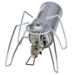 手に入りやすいカセットガス対応のシングルバーナー。搭載するレギュレーター機構により、長時間や低温下の使用でも一定の火力を提供。低重心で安定性にも優れている。