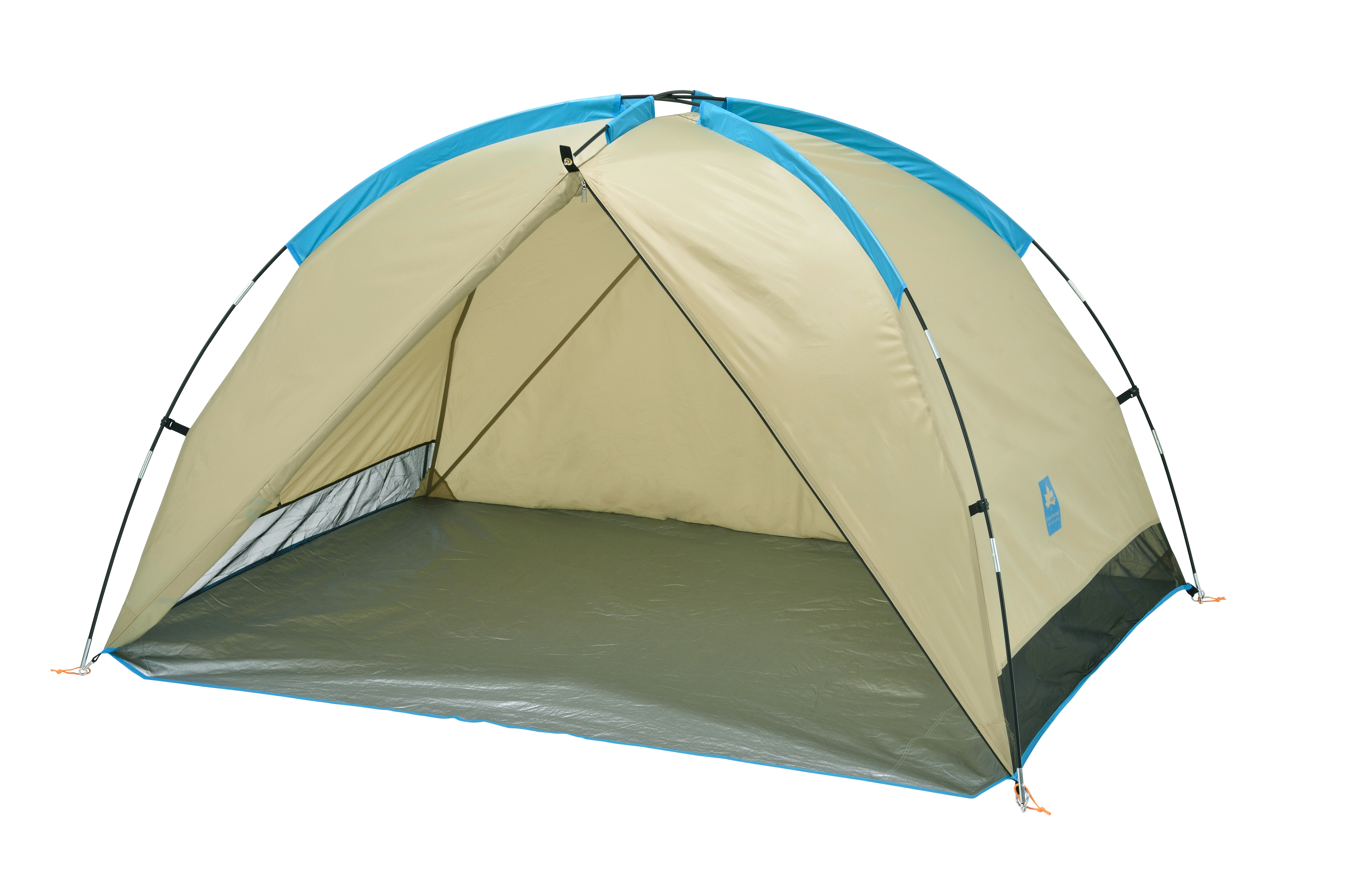 ファスナーでフルクローズ状態にできる入り口部分の半円形は、そのまま前に敷けばシートにもなります。奥側上部は通気用に開いているので、中が暑くなることもありません。