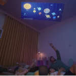 ▲天井へ投影したり天井からつり下げて照射したりと使い方は自在。天井をプラネタリウムに変身させることも可能だ