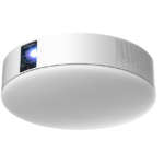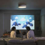 シーリングライトに高性能プロジェクターと高音質スピーカーを内蔵。プロジェクターには専用の短焦点レンズを搭載し、ライトの調光・調色を1万通りから選べる。放送用チューナーとワイヤレスで連携すればテレビ番組も視聴可能だ。