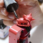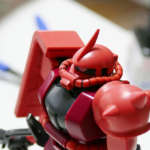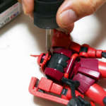 RX-78-2 ガンダムやシャア専用ザクの頭部には“アンテナ”が付きもの。今回紹介してきた1/144スケールのキットのアンテナは、安全性を考慮して丸い膨らみが付けられている。それを上記の手順でシャープにすると印象は急変! グッと凛々しい表情になる。