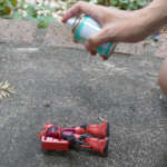 片面に吹いたら乾くのを待ち、20~30分後に反対面も塗布する。小西さんいわく、GSIクレオス製「プレミアムトップコート」は塗布した表面のムラが少なくてオススメだとか。ちなみにトップコートを吹く際は、庭やベランダなど換気のいい場所を選ぶこと。