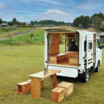 ミシマダイハツが地元の「富士ひのき」を使って作ったオリジナルキャンピングカー。長年、キャンピングカーを販売してきたノウハウを詰め込んだ渾身のニューモデルだ。トランスフォーメーションボックスを積み木のように組み合わせれば、室内レイアウトも自由自在。電子レンジや冷蔵庫なども追加できる本格派。