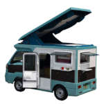 完全開放型ポップアップルーフのおかげで、軽自動車とは思えない広々とした開放的な使い方をできるのが最大の特徴。ソーラーパネルやリチウムイオンバッテリーなど、すべてコミコミのぜいたくなキャンピングカーとなっている。