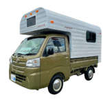 軽トラックの荷台に載せるトラキャンスタイル。アメリカンテイストあふれるインテリアとラウンドしたスタイリングが目を引く。本格的な大型トラキャンの老舗メーカーだけあって、軽量化や断熱など作りもしっかりしている。