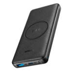 ワイヤレスおよび有線接続での充電に両対応するモバイルバッテリー。容量は1万mAhでiPhone 12なら2回以上充電できる。ワイヤレス充電の出力は最大10W。Type-C、Type-Aポートを備える。本体充電は約4.5時間~が必要。