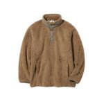 ホワイトマウンテニアリングとのコラボアイテムの中でも、特におすすめなのがプルオーバーのフリースです。ボリューム感のあるシルエットが特徴で、アウター感覚で着用できます。トップスにボリュームを出すのがトレンドなので、細身のパンツと合わせれば、トップスはこれ1枚でOK。コーデに悩むことなく今っぽい着こなしを実現できます。毛足が短めでレトロアウトドアな雰囲気も◎。こんな万能ウェアがユニクロ価格で手に入るのは魅力的!(宇田川さん)
