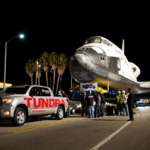 そんなタンドラは2012年にとてつもないチャレンジに挑みます。2011年に引退したスペースシャトル・エンデバー号をロサンゼルス国際空港からカリフォルニア科学センターまで移動させる際、途中にある橋がシャトルを牽引する大型の台車の荷重に耐えられないことがわかりました。この橋を渡るためには軽いクルマと台車で牽引する必要がある。その大役をタンドラが担ったのです。