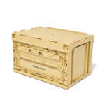 ▲フタを開けての積み重ねにも対応するので、テント内の小物整理に重宝する。底面積が同じで深さが違う20タイプ(容量約24L)もある