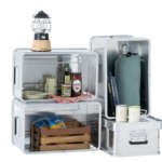 ▲耐荷重20kgで6段まで積み重ねられる。重ねたまま2方向から取り出せるので、向きを気にせず置ける。一番上は別売の20Lモデル