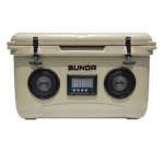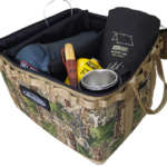 サイズ違いのギアをスッキリまとめて持ち運べる収納ボックス。フタがフラットでそこそこ強度があるならサイドテーブルのような使い方ができるし、スタッキング仕様であればまるであつらえたラックのよう。基本的にギアが入ったままサイトに置くので、色とデザインも妥協したくない。