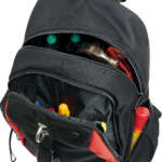 高品質ポリエステルで作られた本体には、工具専用の収納ポケットが付いている。メインコンパートメントには、着替えなども入れられる。また、長い工具は一端を出して収納し、移動できるようになっている。