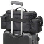 ソフトタイプのローラーバッグにショルダーハーネスがついた2ウェイタイプ。主要なエアラインの機内に持ち込めるサイズで、望遠レンズを装着した一眼レフも入る容量を誇る。